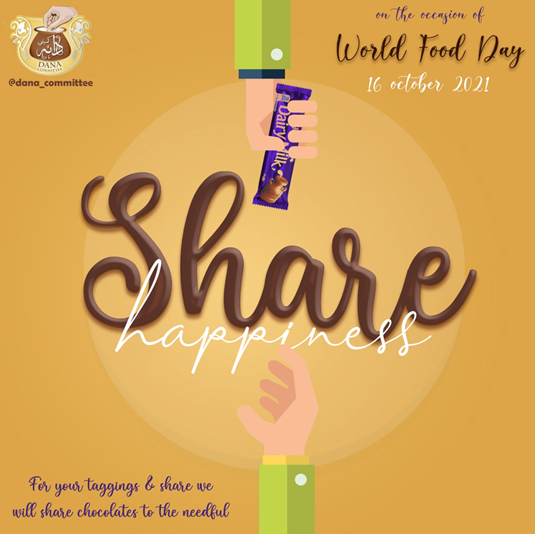 This year Dana Committee on the World Food Day organized the program on the theme of Share Happiness Drive under which chocolates were distributed in children of needy ibadullah.