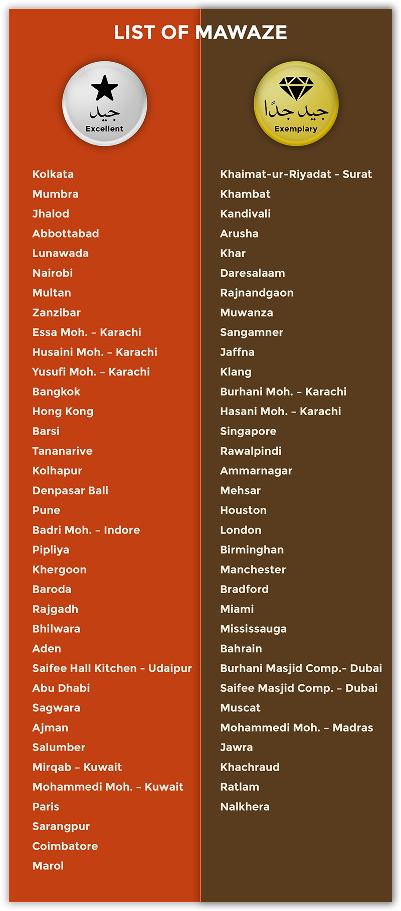 In the light of many such Irshaad-e-Munir, this year Excellence Certificates were conferred to those mawaze who had kitchens with robust infrastructures and impeccable maintenance.