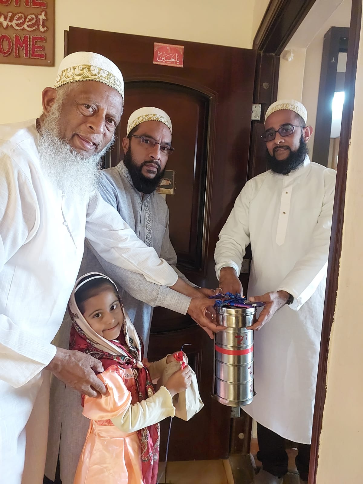 - Mashaikh Kiraam in Mohammedi Mohallah – Madras delivered thaali to mumineen’s homes who were not taking thaali regularly.