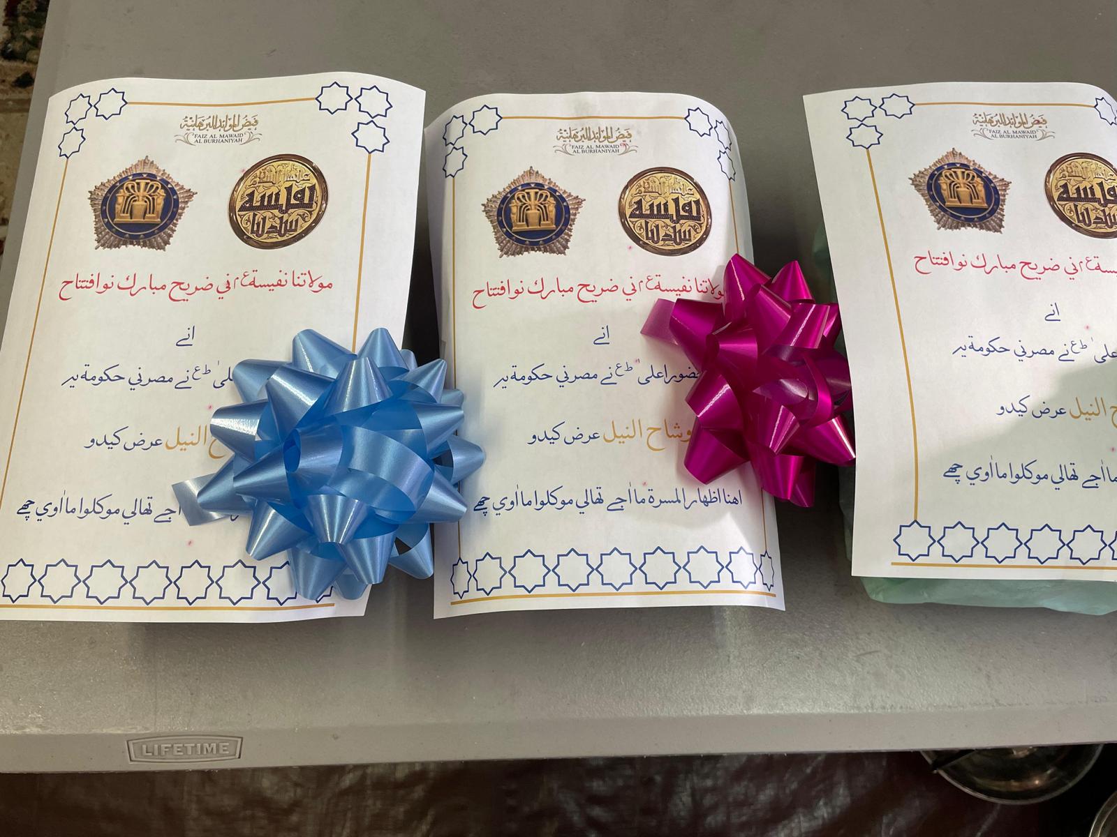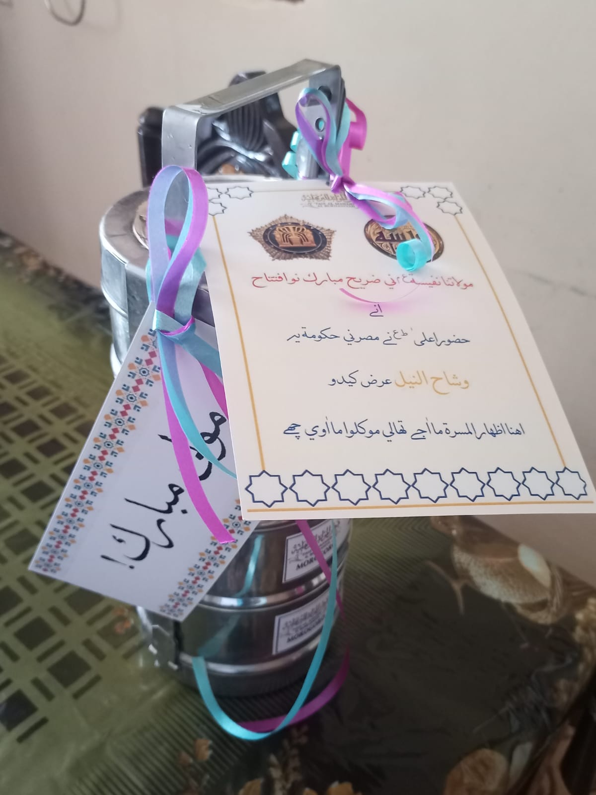- Mumineen of Pakistan, who received the sharaf of performing khidmat during Moulatena Nafisa AS Zarih Mubarak construction, performed the khidmat of niyaaz in Pakistan.