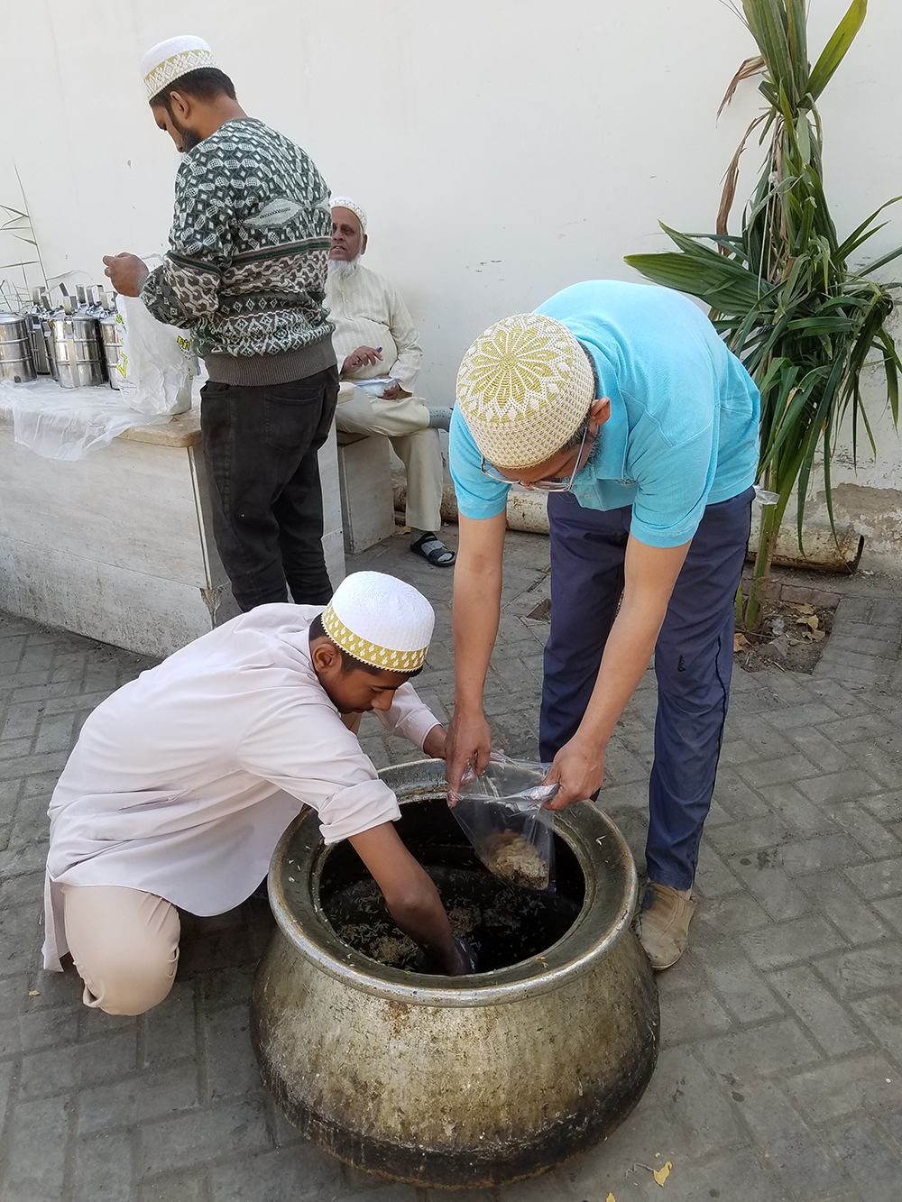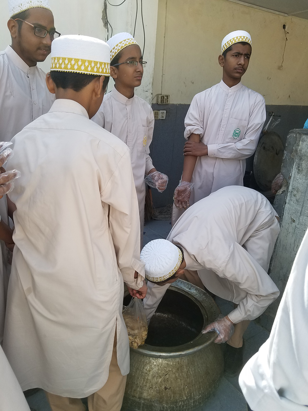 Activity concluded with thaali filling and farzando going for distribution. Many farzando also participated in cleaning vessels of any remaining dana present.