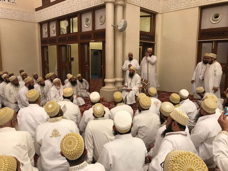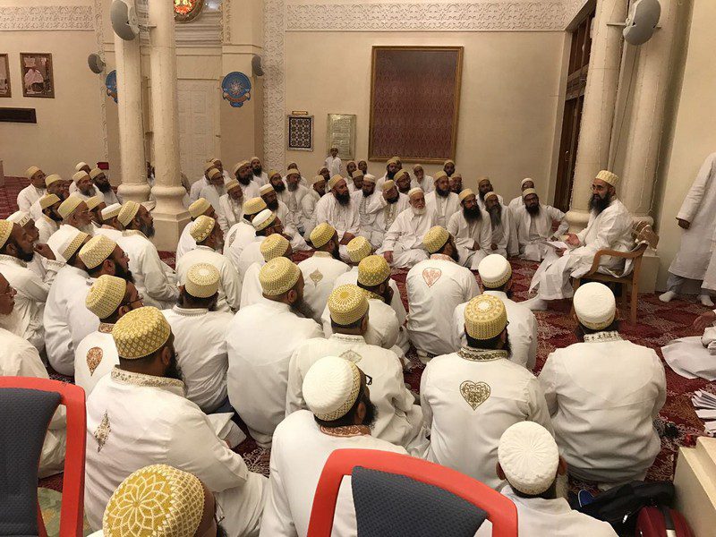 On 20th Jamadil Akhar 1438H, 18th January 2018 at 10:00pm Al-Syed Al-Ajal Shehzada Taha BS Najmuddin DM presided over the majlis in Ivan al-Barakaat in Al Jamea tus Saifiyah. Shehzada Sahab DM provided istibsaar on Waaz Mubarak of Huzur-e-Aala TUS delivered on the Day of Milaad Mubarak, bestowing invaluable guidance to Ummaal Kiraam on how to perform khidmat of Huzur-e-Aala TUS.