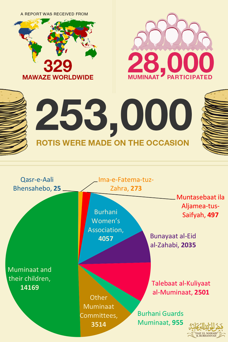 On the revered miqaat, HuzuralaTUS graciously confirmed “Gol Roti” in the niyaaz menu, for which muminaat either made roti collectively or sent homemade rotis.