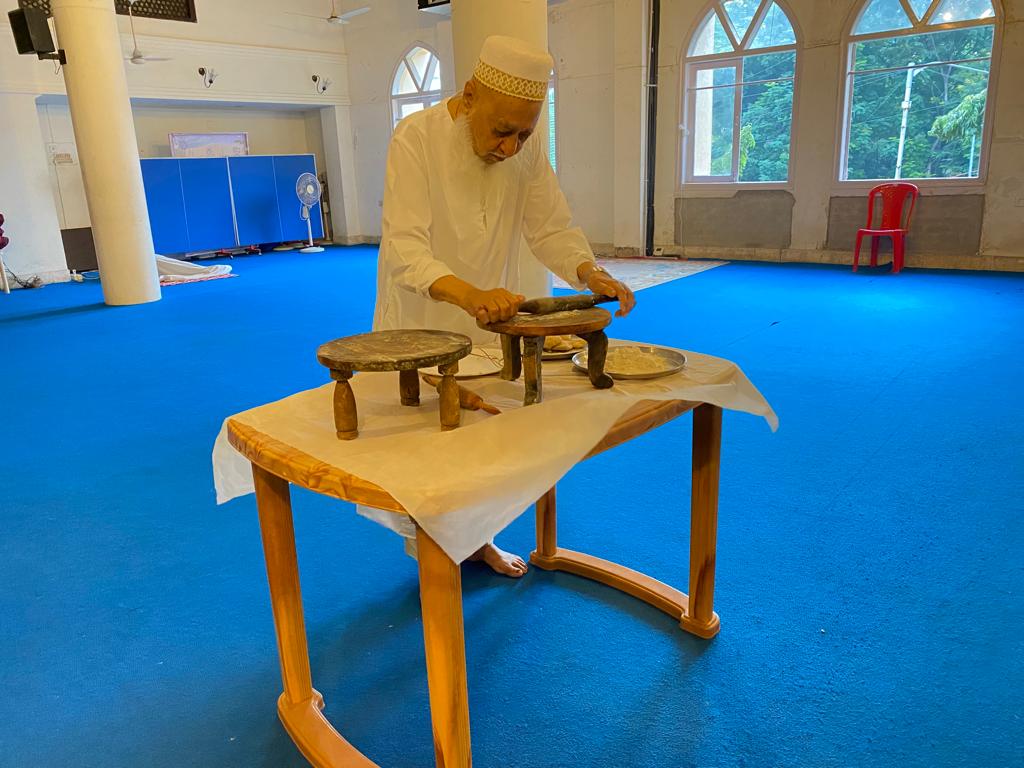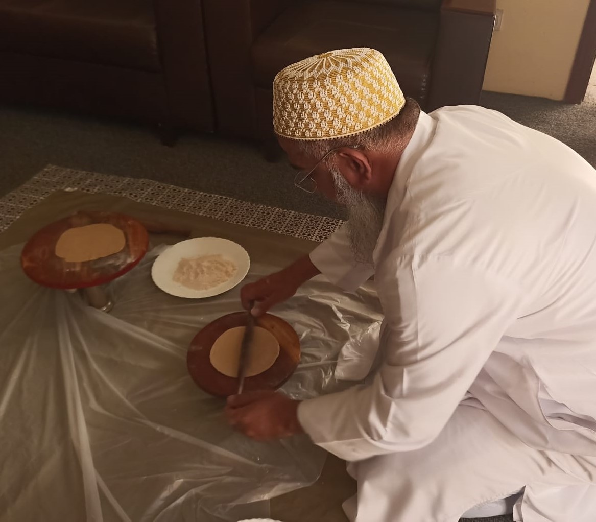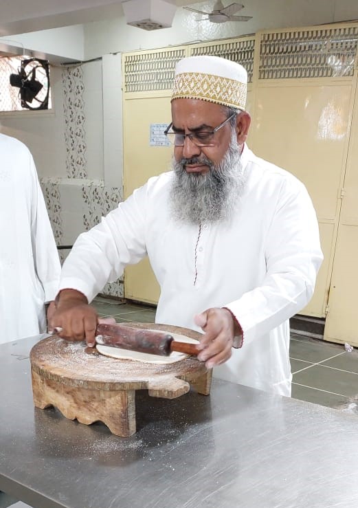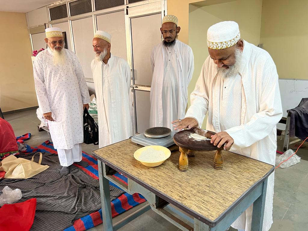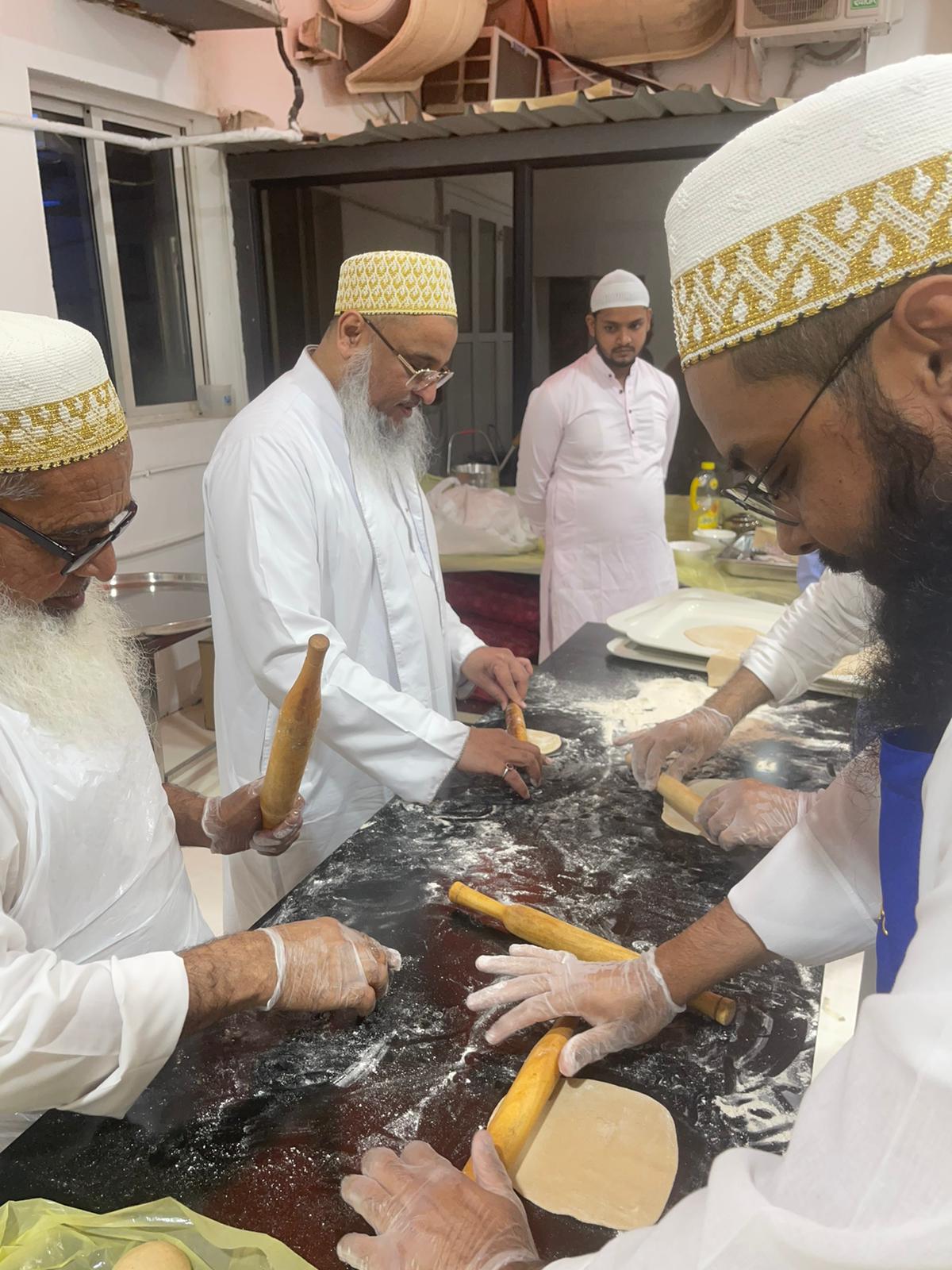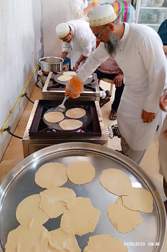 The following day on Sunday – 17th of Rabiul Awwal 1445H, Huzurala TUS performed Roti Making Amal in sehen of Raudat Tahera.