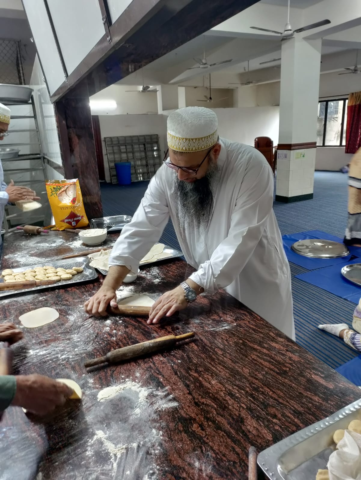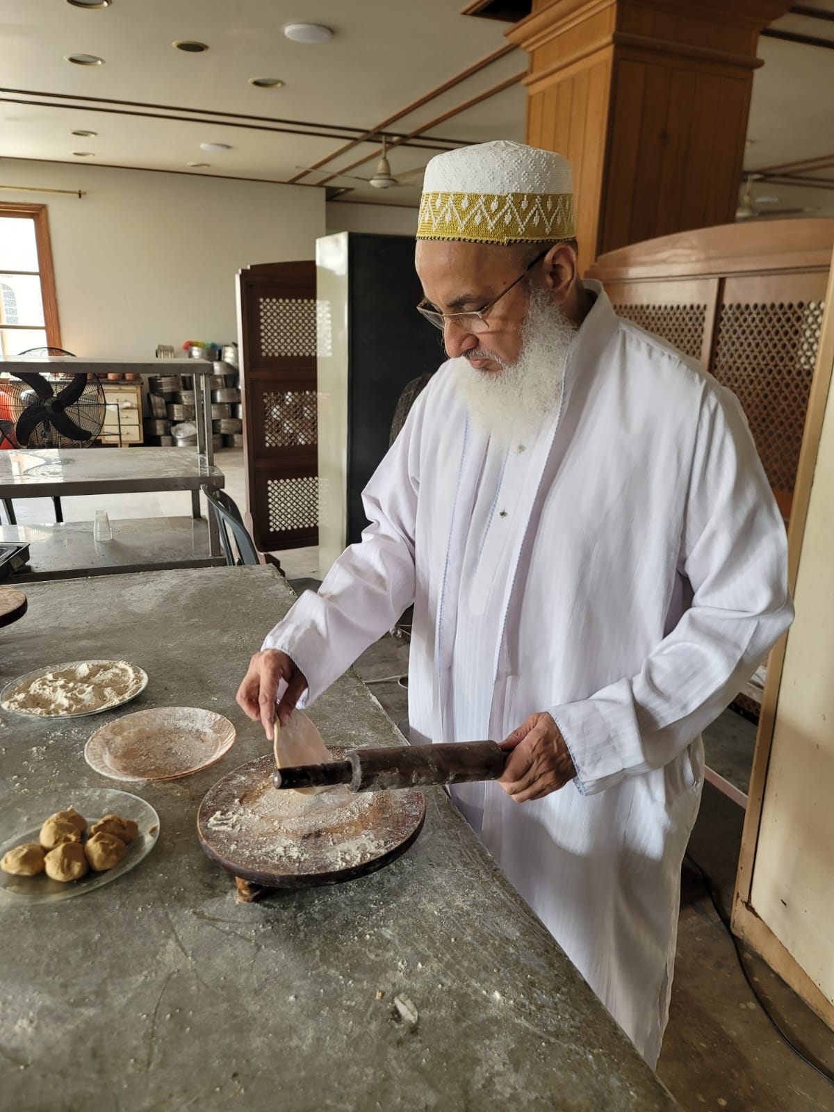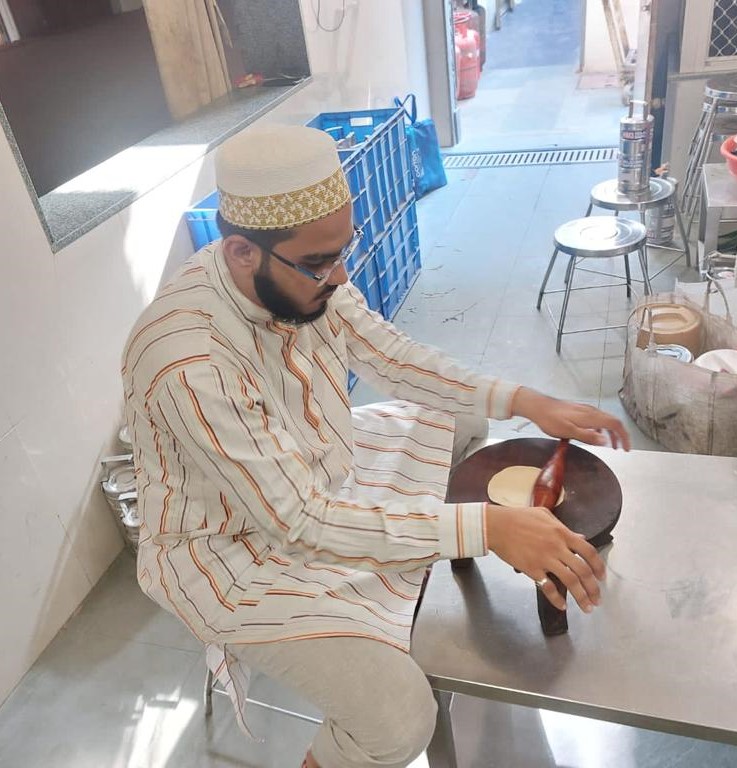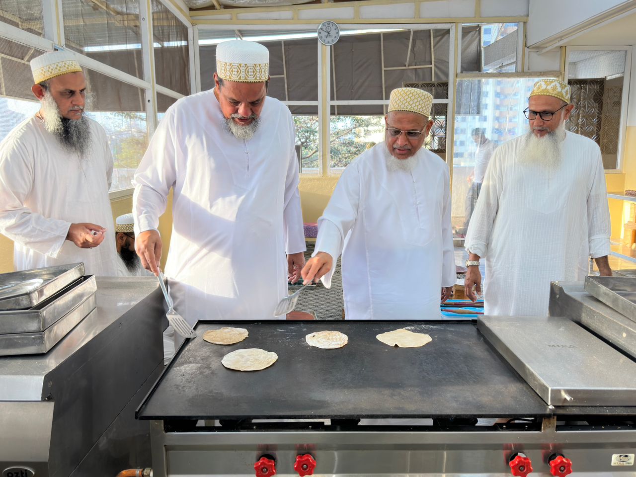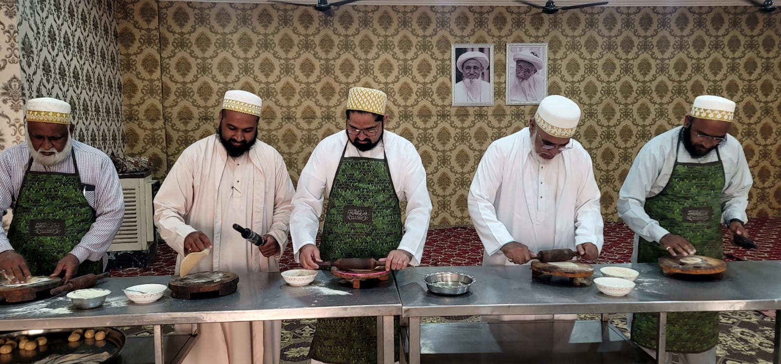 The following day on Sunday – 17th of Rabiul Awwal 1445H, Huzurala TUS performed Roti Making Amal in sehen of Raudat Tahera.