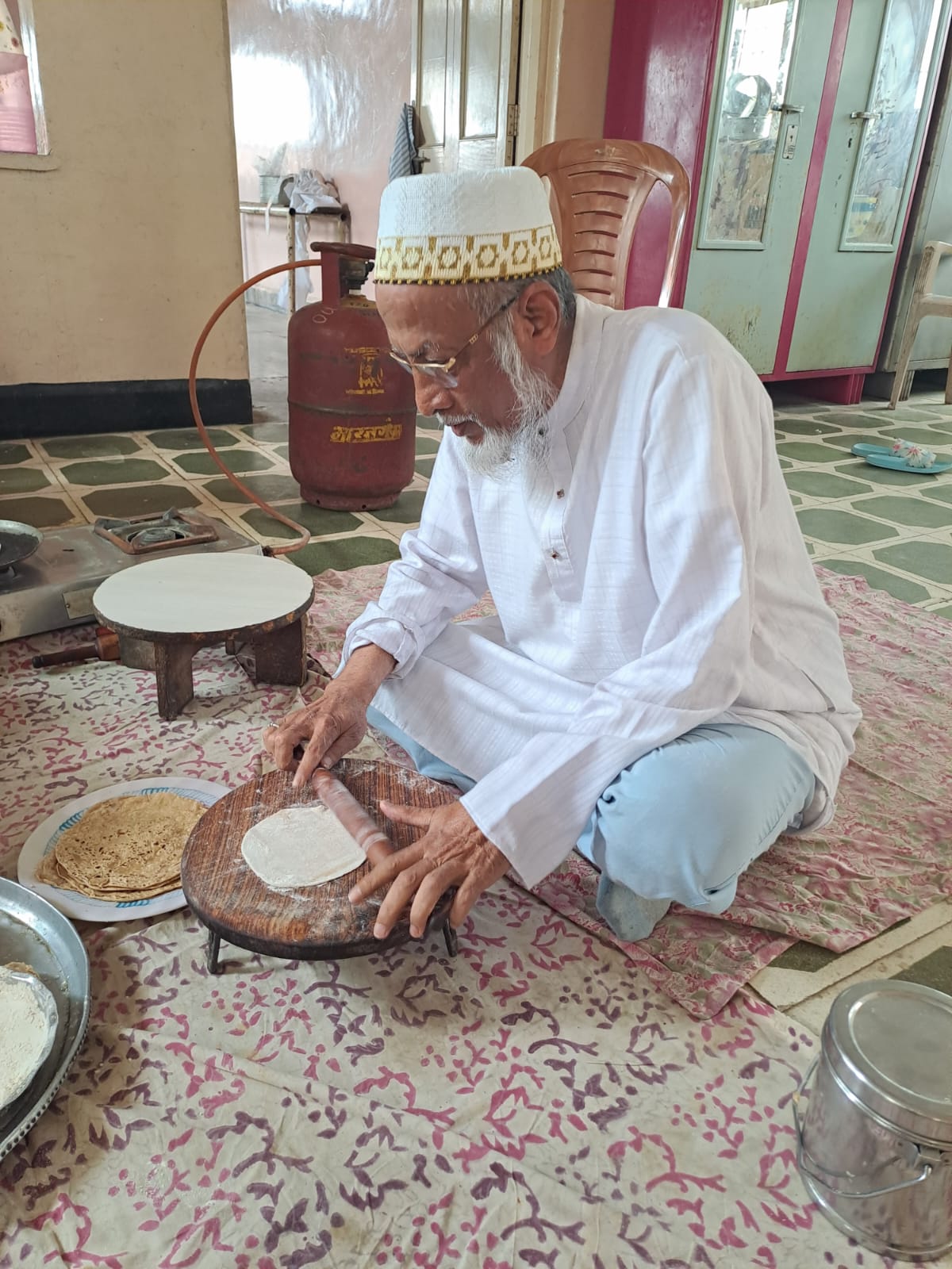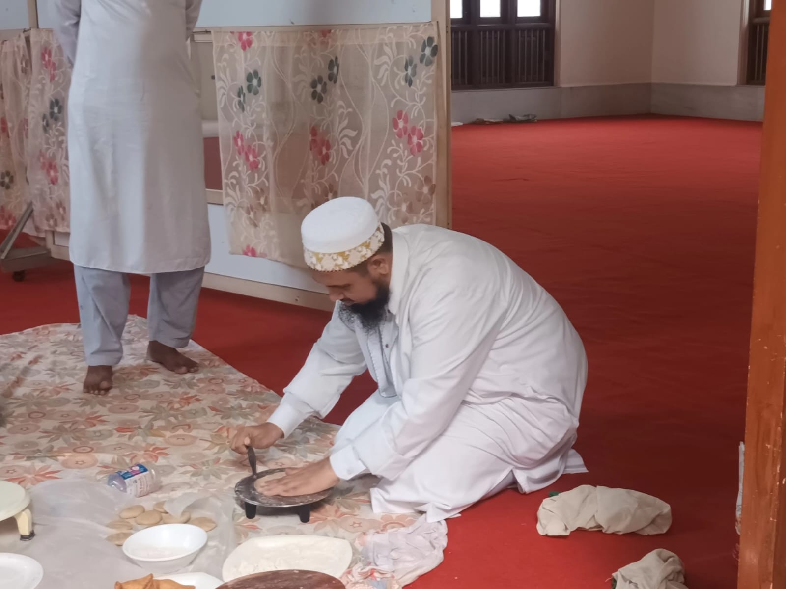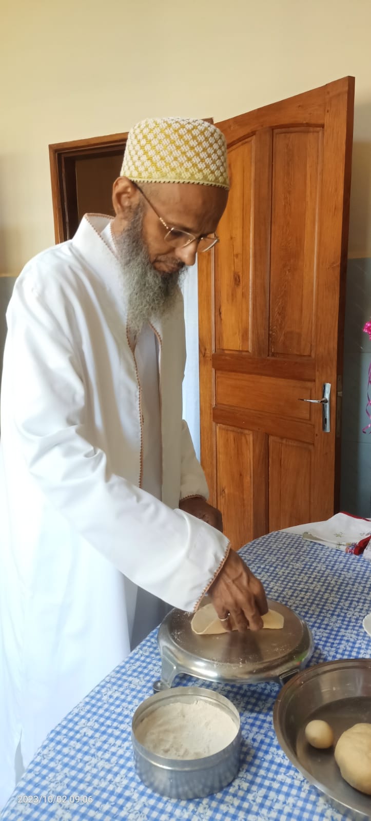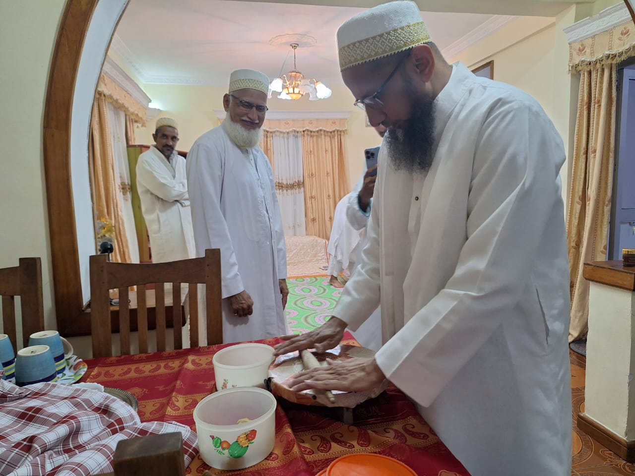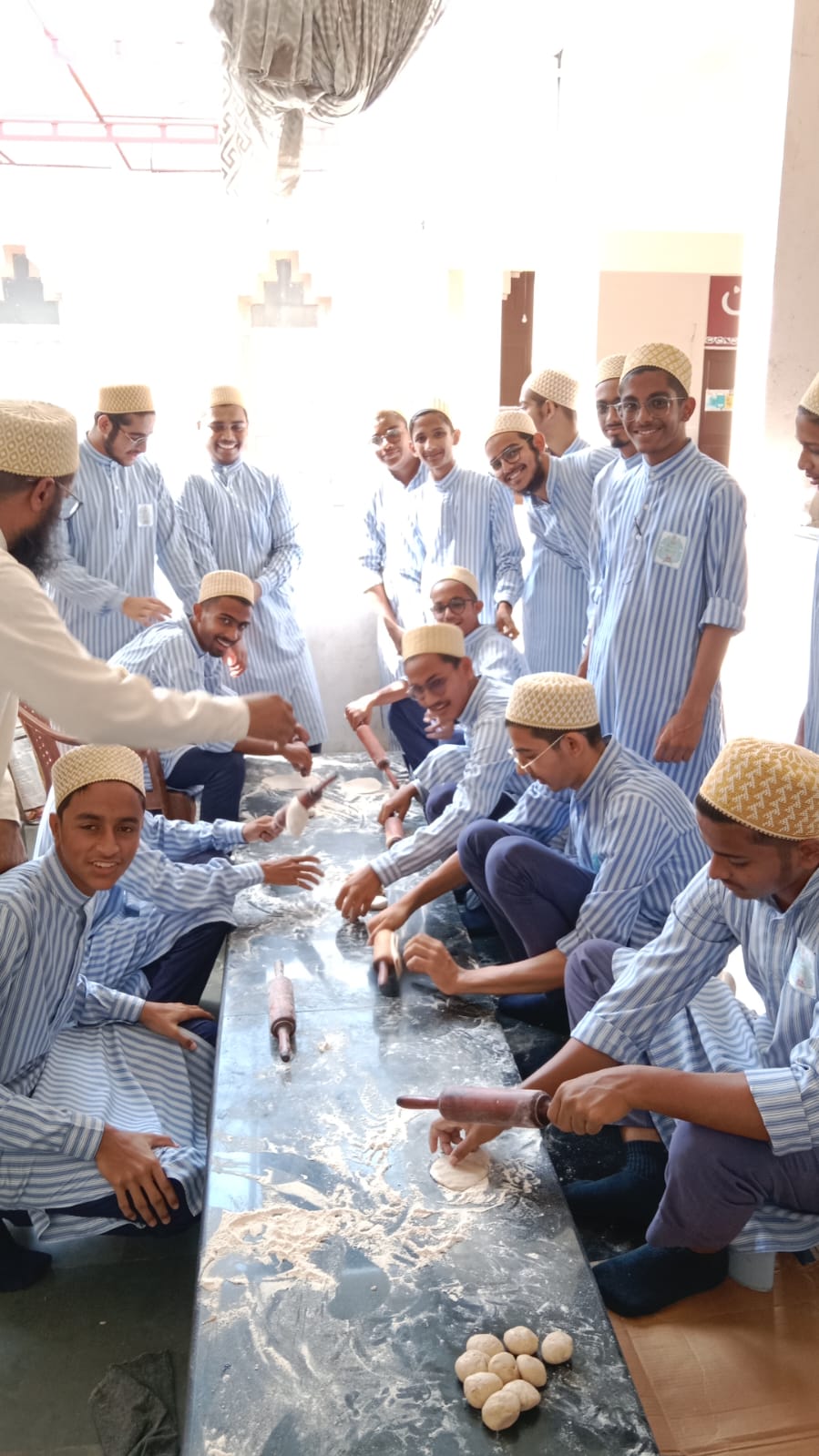The following day on Sunday – 17th of Rabiul Awwal 1445H, Huzurala TUS performed Roti Making Amal in sehen of Raudat Tahera.