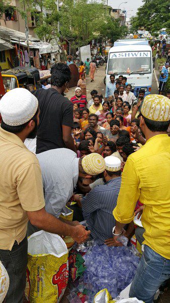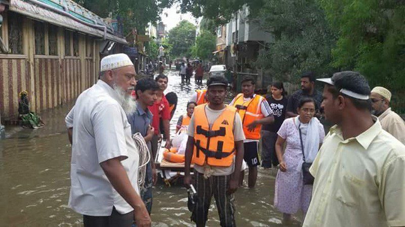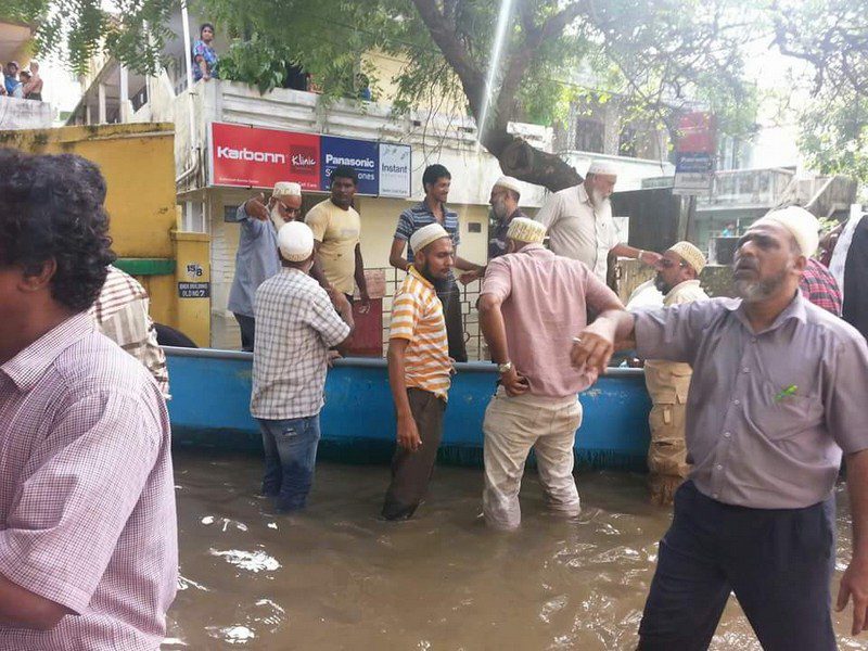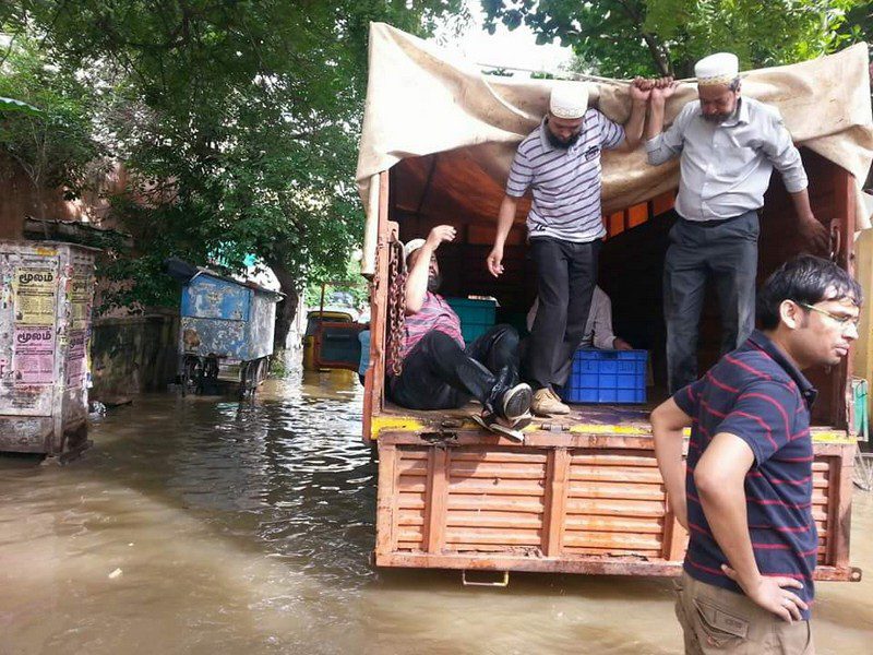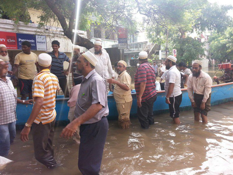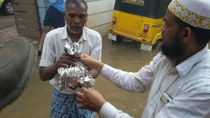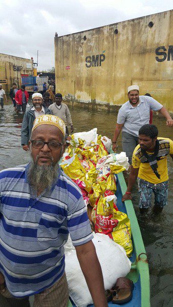 Following the catastrophic floods caused by severe rain in Chennai, which has broken a hundred year record for most rain, mumineen participated in providing relief to flood victims by providing them food items in this time of need.