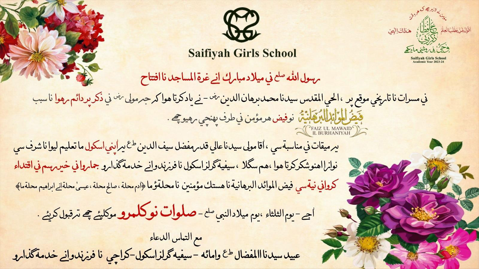 For the third year, Saifiyah Girls School organized Kalamra Competition amongst four Mohallah of Karachi celebrating Milaad al-Nabi SAW and Iftetah of Ghurratul Masajid.