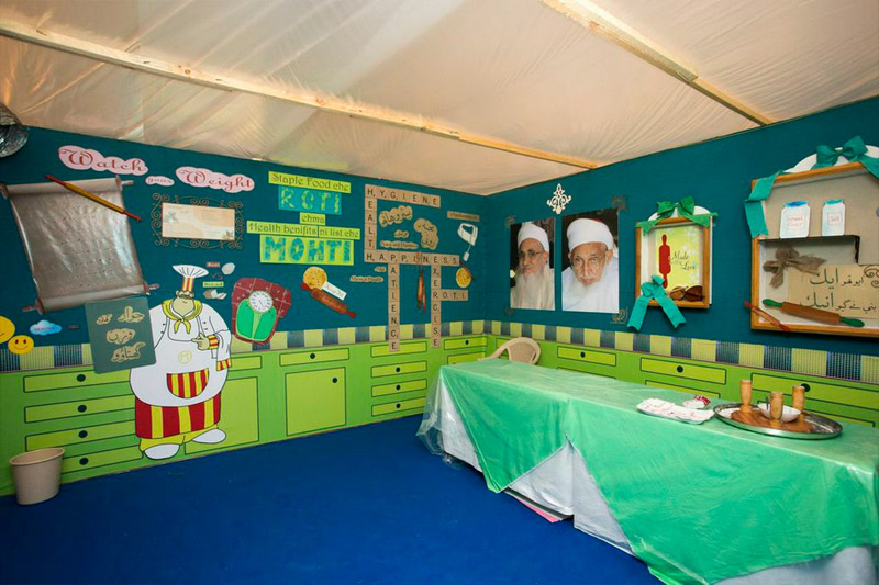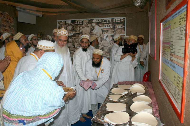 Uyun-o-Hasanaat Amal al-Khubz (Roti Maraz) which was inititated during the auspiscious occasion of Al Imtehan us Sanavi 1435 in Mumbai, in the jiwaar mubarak of Raudat Tahera has so far, surpassed all its predecessors in its presentation and attention to detail. It covered all the aspects to roti making, starting with the history of roti dating back to the time of Adam NabiSAW, moving on to the planting and harvesting of wheat grains, and leading upto the making of an actual roti. They based thier research and presentation on Syedna Mufaddal Saifuddin’sTUS bayaanat mubaraka and showed video recordings of HisTUS bayaanat, which he had stated in various Vaaz Mubaraks. The main focus of this maraz was to show that roti making is, as MaulaTUS states, an art – ilmi kareegari, and should not be looked down upon! The maraz highlighted the importance of roti in everday life, all that goes into making a roti, its nutritional value and its importance in our daily diet. After this how to make different types of rotis like – channa ni roti, bajra ni roti etc, was shown by professional roti makers on actual tawwas and the viewers got to taste the results.