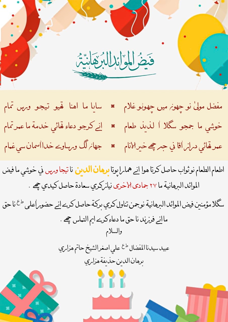 Faizul Mawaidil Burhaniyah Niyaaz by Shk Aliasgher Bhai Hazari on 3rd Waras of grandson Burhanuddin