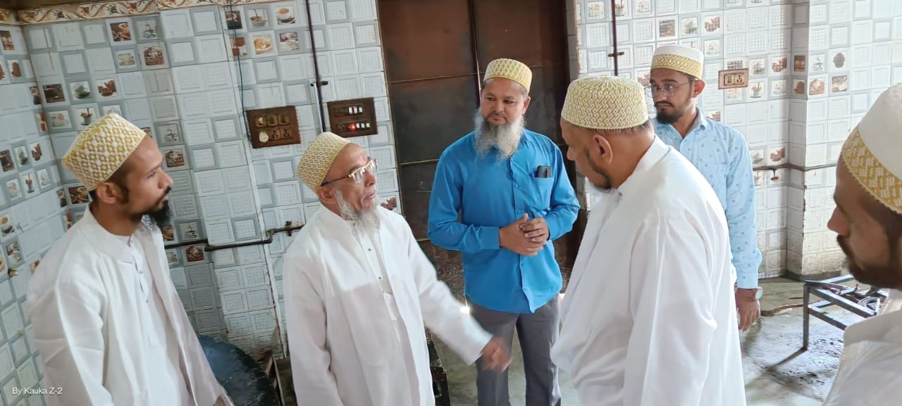 Saheb-e-Dawat Janab Alazhar Bs Nooruddin visits Noor Mohallah kitchen construction site