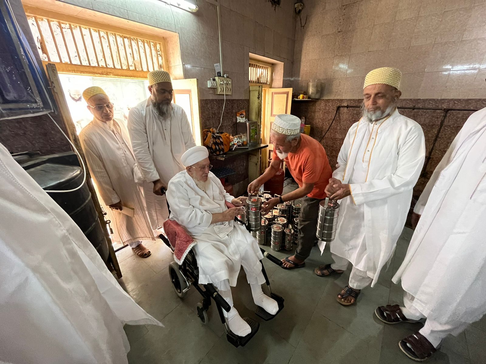 Saheb-e-Dawat Janab Alazhar Bs Nooruddin participates in thaali taqseem amal and visits mauze kitchen