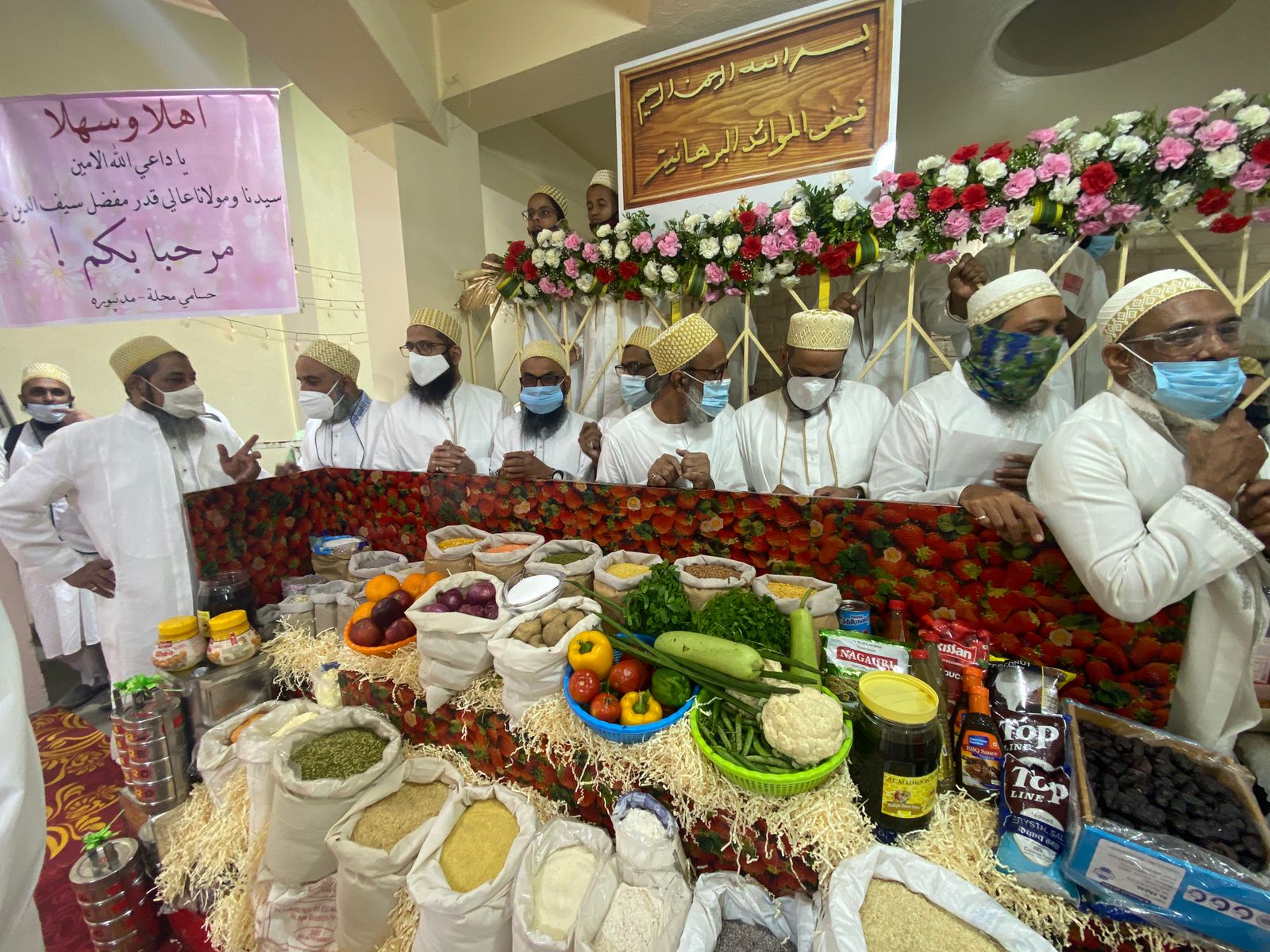 Husami Mohallah Mumbai presented anaaj items to Huzurala TUS for Shifa Mubarak