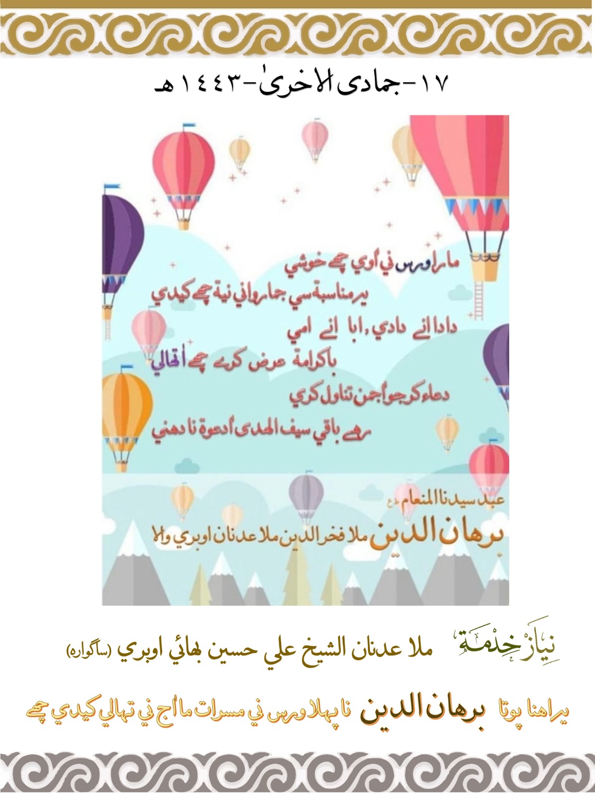 Niyaaz in Faizul Mawaidil Burhaniyah on marriage of Ammar Bhen and Sakina Bhen