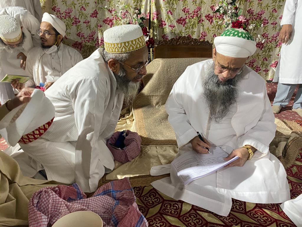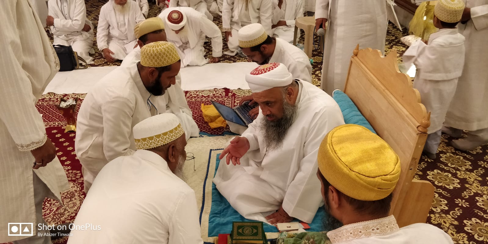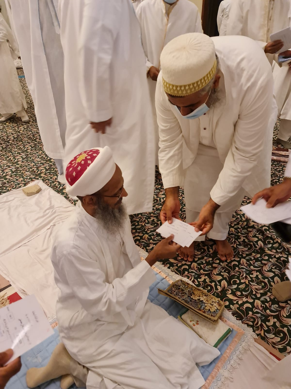 Mumineen performing niyyat of doing niyaaz in Faizul Mawaidil Burhaniyah on the eve of Urs Mubarak of Al-Dai Al-Ajal Syedna Ismail Badruddin RA