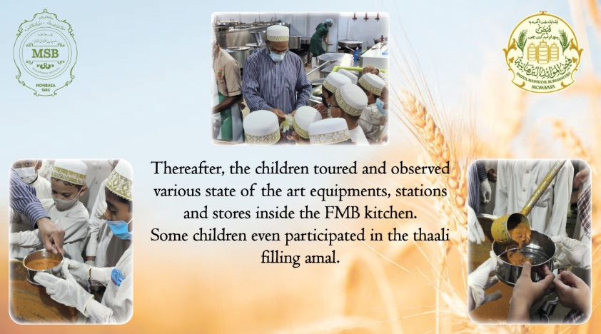 Farzando of Madrasa Saifiyah Burhaniyah visited Faizul Mawaidil Burhaniyah smart kitchen. Farzando saw various state of the art equipments and areas of the kitchen. Farzando also participated in thaali filling amal and FMB Niyaaz.