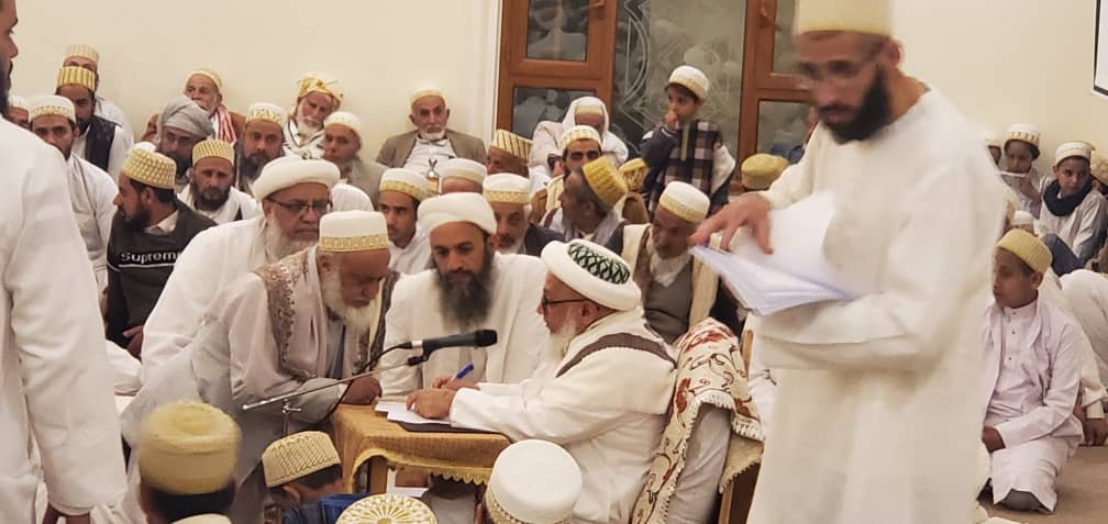 Farzando of al-Madrasa al-Saifiyah al-Burhaniyah (Haidery) perform niyaaz in Faizul Mawaidil Burhaniyah on Urs Mubarak of Al-Dai Al-Ajal Syedna Ismail Badruddin RA