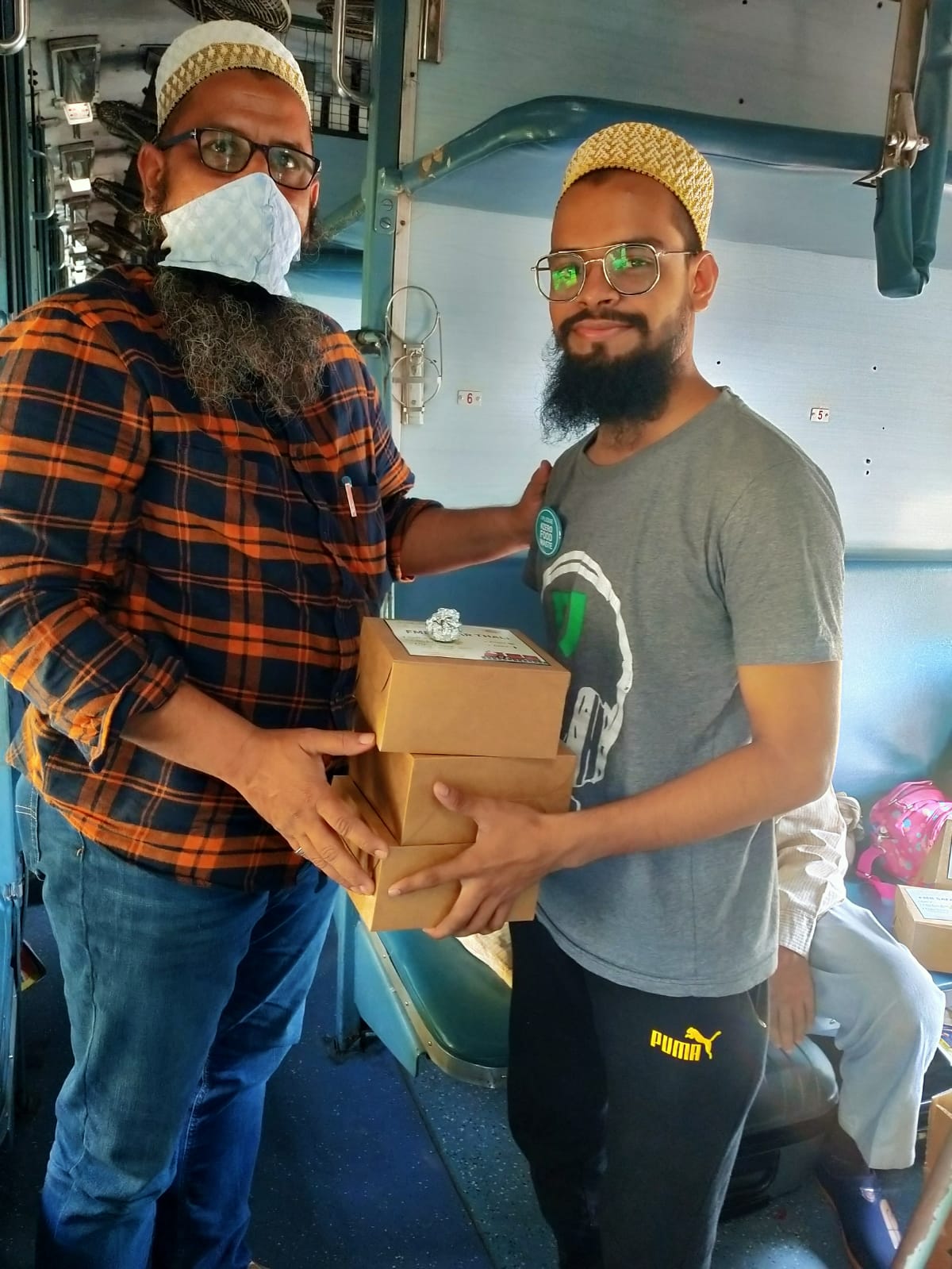 Tosho given to mumineen travelling to Mumbai for Urs Mubarak of Al-Dai Al-Ajal Syedna Mohammed Burhanuddin RA. Zero food wastage badges were also given to passengers.