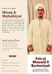 Faizul Mawaidil Burhaniyah Niyaaz by Yusuf Bhai Architect on first waras of his daughter Umme Hani