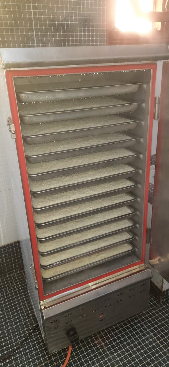 Stainless Steel rice steamer installed in the kitchen.