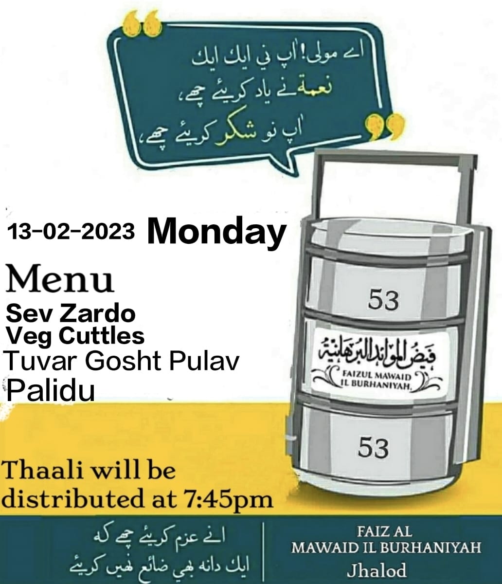 Celebratory thaali send on Birthday of Al-Dai Al-Ajal Syedna Mohammed Burhanuddin RA