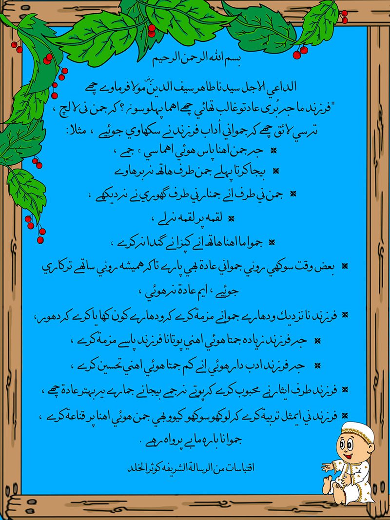 May the barakaat of Faizul Mawaidil Burhaniyah persist for long long time, and may the barakaat of Syedna Mohammed Burhanuddin RA and His Mansoos Syedna Mufaddal SaifuddinTUS persist with it. May Allah grant Syedna Mufaddal Saifuddin TUS long and healthy life till the day of Qayaamat. Ameen