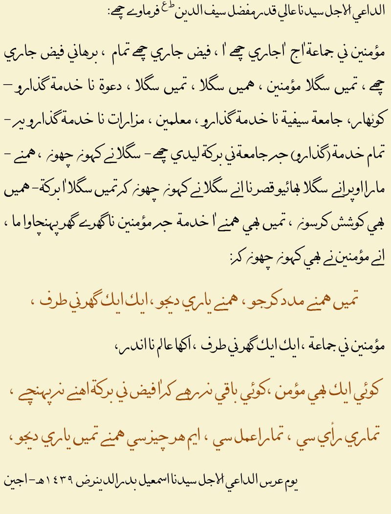 Urs Mubarak Al-Dai Al-Ajal Syedna Ismail Badruddin RA Jamnagar – 1434H